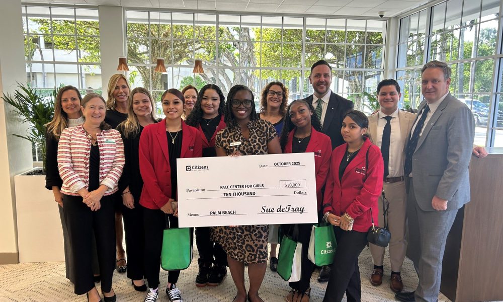 Palm Beach County, Fla. – Pace Center for Girls Palm Beach recently received a generous $10,000 grant from Citizens Financial Group to support its College and Career Readiness Program. The grant, presented on behalf of Citizens Private Bank, which recently celebrated its grand opening in Palm Beach, will help the second-chance school for girls expand resources that prepare students for higher education and meaningful careers. This support is essential to Pace Palm Beach’s mission of providing girls with the tools, confidence, and opportunities they need to overcome adversity and build successful futures.Â