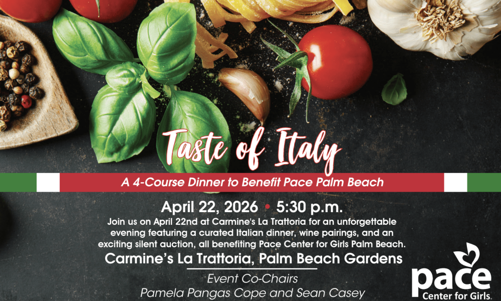 Palm Beach Gardens, FL – The community is invited to enjoy a curated 4-course Italian dinner at Carmine’s La Trattoria, located at 2401 PGA Blvd., Palm Beach Gardens, on Wednesday, April 22, 2026, at 5:30 p.m. The event features a silent auction and exquisite courses perfectly paired with fine Italian wines — all while supporting the Pace Center for Girls Palm Beach. Pace believes that every girl deserves a future filled with opportunities, respect, and agency to pursue her dreams. The event serves as a reminder of the progress achieved as a community while also urging us to envision the next phase of this critical mission.